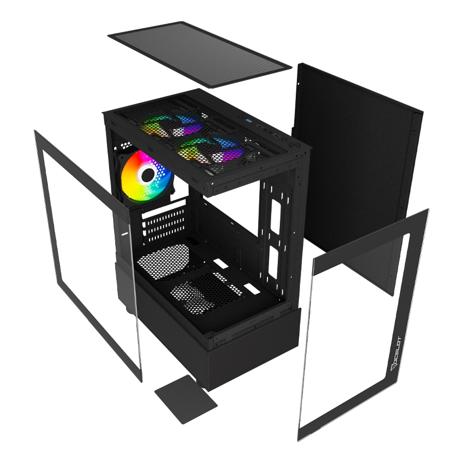 GABINETE OCELOT GAMING GLASS EN6 / MINI TOWER / M-ATX, ITX / PANEL LATERAL Y FRONTAL DE CRISTAL TEMPLADO/ INCLUYE 3 VENTILADORES / ENFRIAMIENTO LIQUIDO HASTA 240MM / GPU HASTA 315MM / COLOR NEGRO