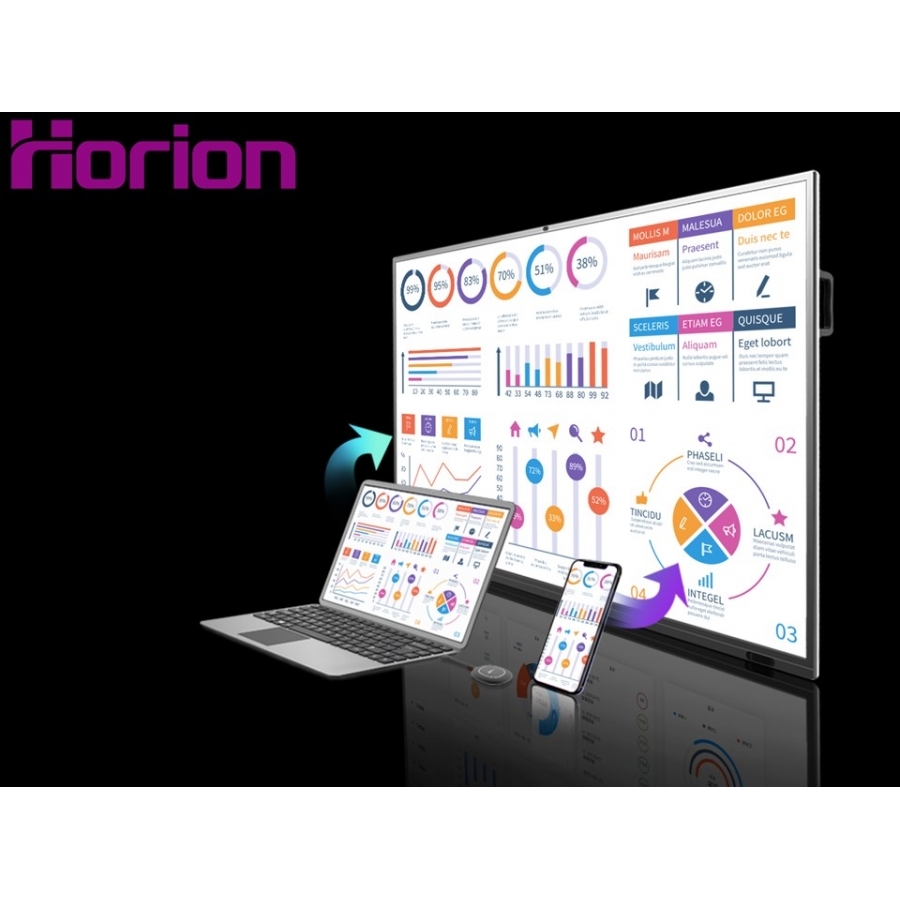 MONITOR INTERACTIVO HORION 86M5APRO 86 NFC, SCREENCASTING, BLUETOOTH 5.0, CMARA 13 MP, 20 PUNTOS TCTILES, 10W/2, 350 CD/M2, CONTRASTE 12001, HDMI, DP, VGA